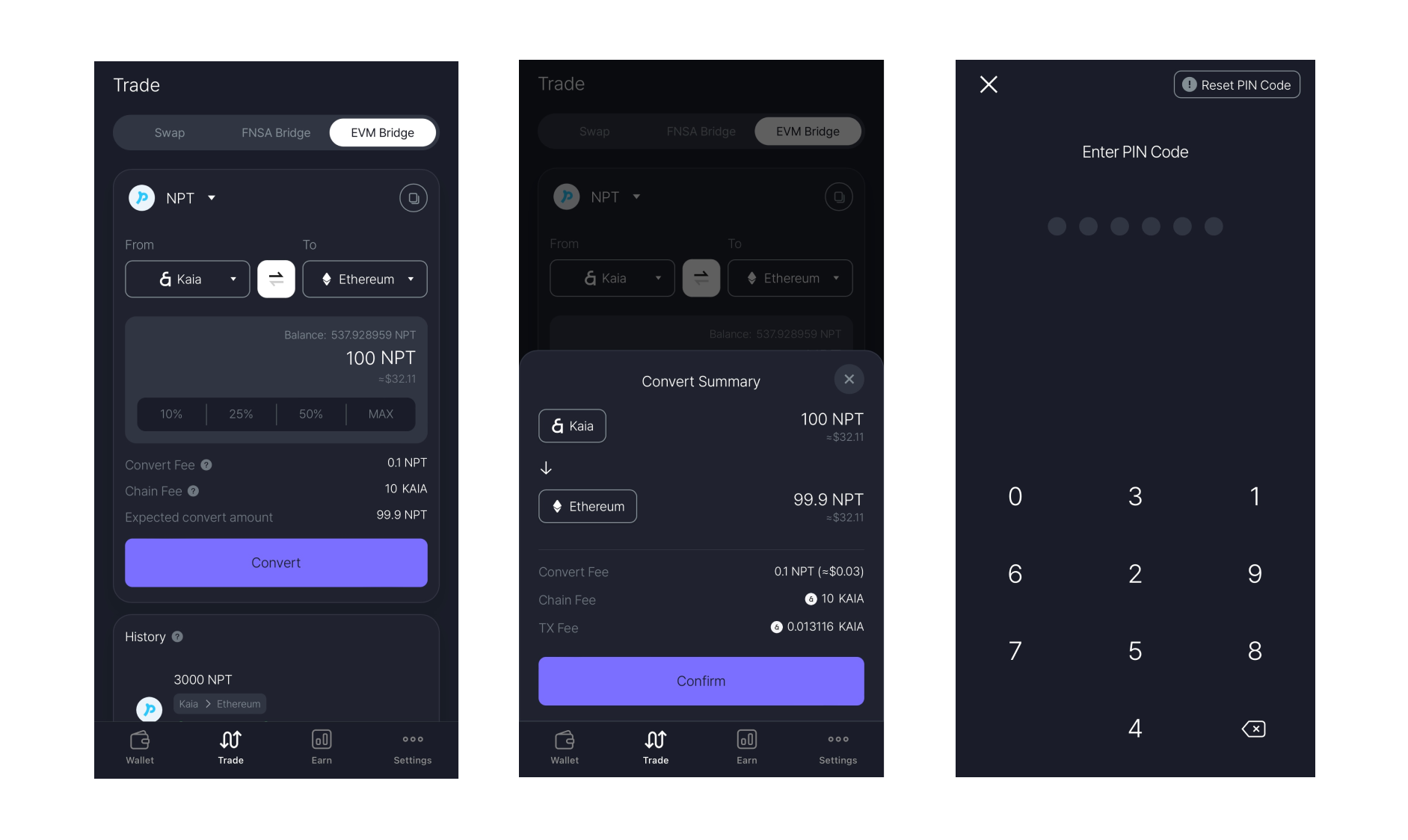 6. Enter the PIN Code to complete the transaction to bridge.&#x20;