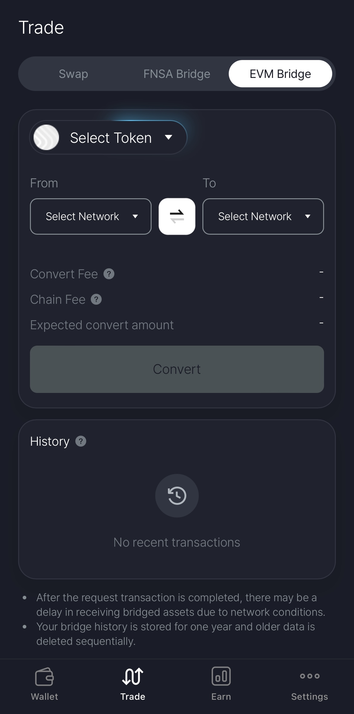 * When bridging, a “Transaction Fee”, “Convert Fee” and “Chain Fee” will be applied