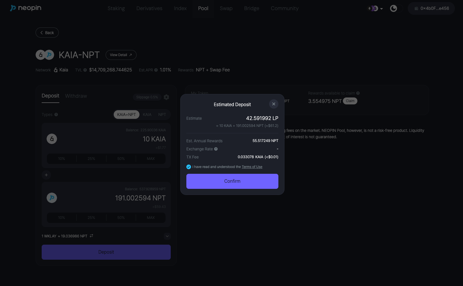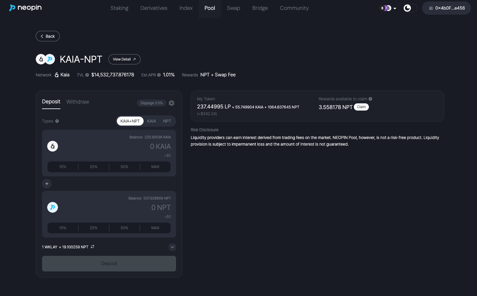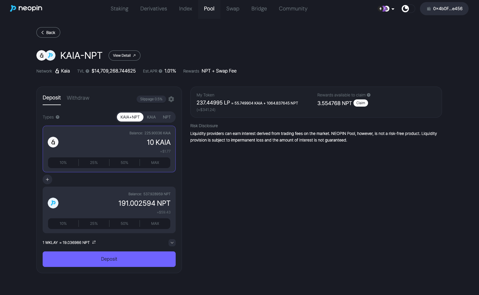 >   * For example, for KAIA-NPT Yield Farm, you need to have both KAIA and NPT in your wallet.
