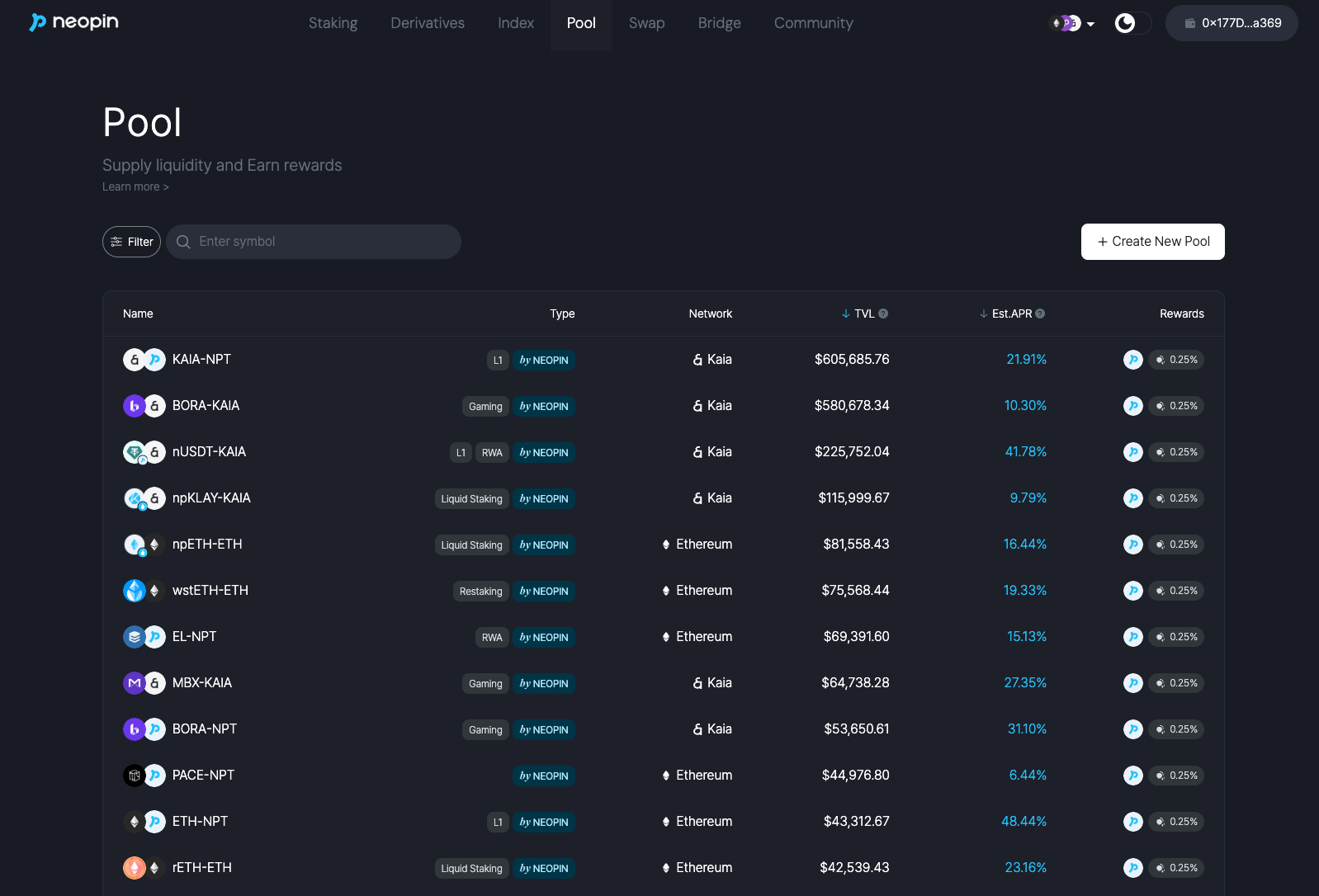> * The expected APR for Pool is determined by the chain inflation, and the changed APR will be updated and displayed in the  Pool product information.
