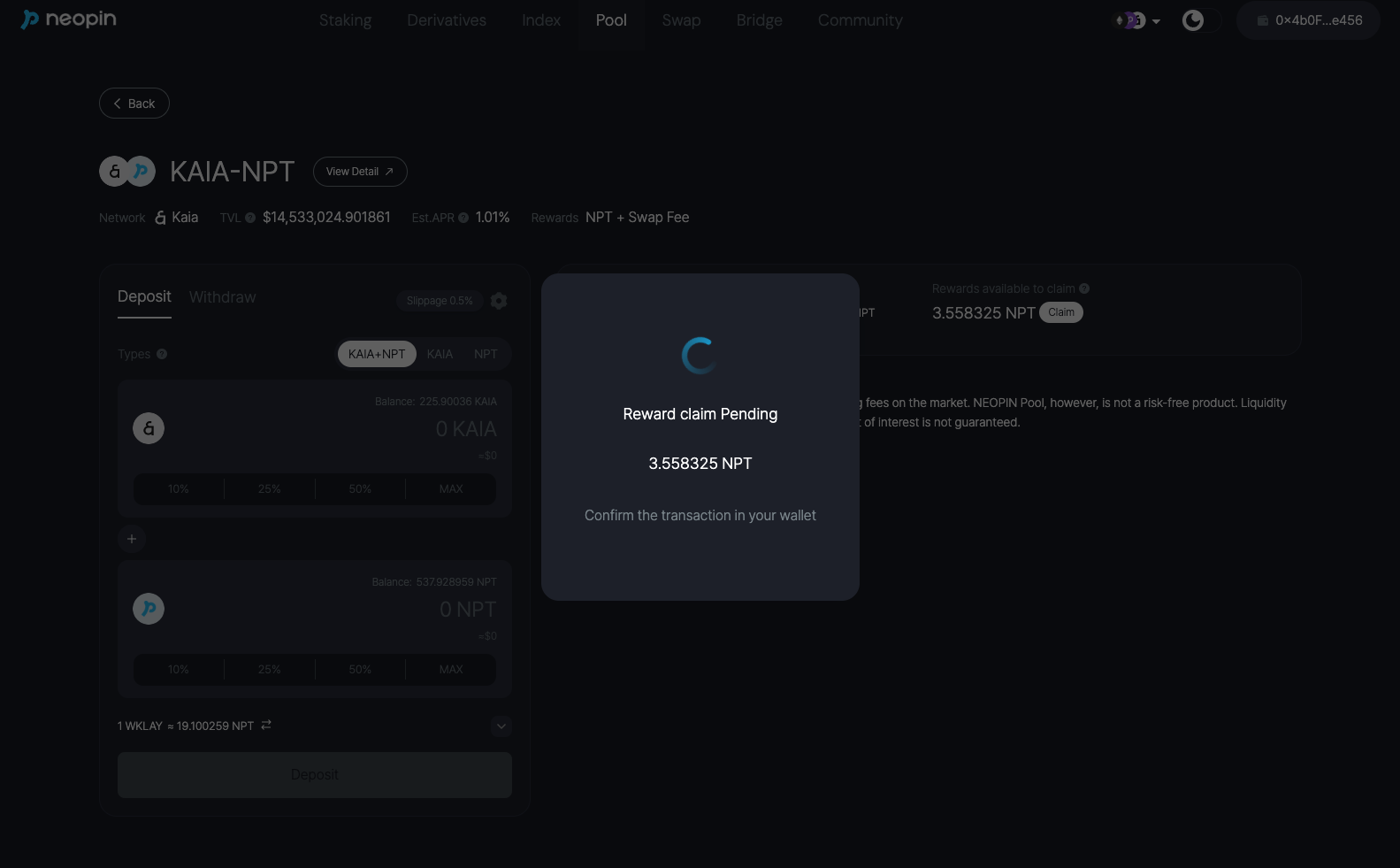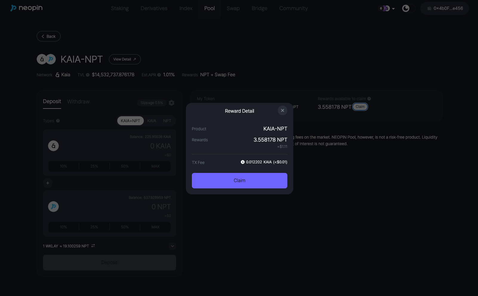 3. Click the **\[Claim]** button to receive unclaimed rewards from Pool
