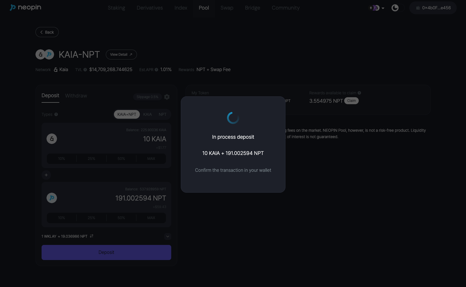 >   * If this is your first time using a product, a one-time approval is required to proceed with a Deposit.  >[#6.-approve](https://docs.neopin.io/get-started/neopin-wallet#6.-approve "mention")