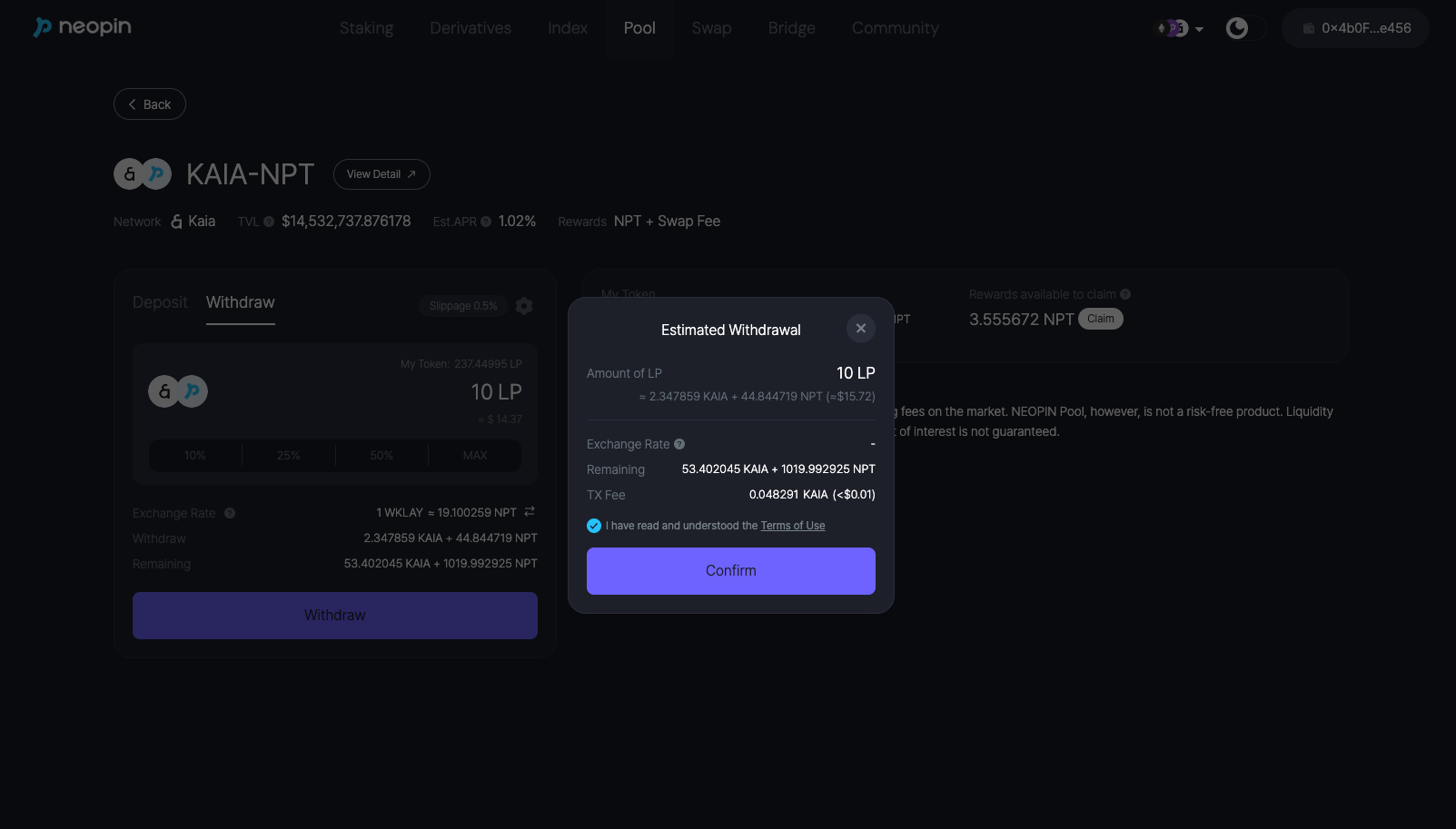 3. Review the "Estimated Withdrawal", and then click the **\[Confirm]** button. \